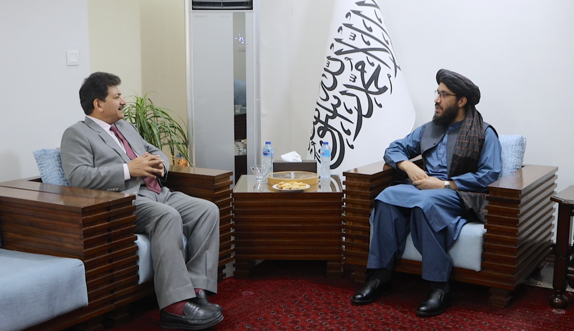 H.E. Sardar Ahmad Shakeeb, the acting Ambassador of Afghanistan in Islamabad met with Mr. Hamid Mir a prominent journalist and analyst. During the meeting, Afghanistan-Pakistan bilateral relations, people-to-people links, opportunities, and the significant role of media and journalists in addressing the current challenges were discussed.